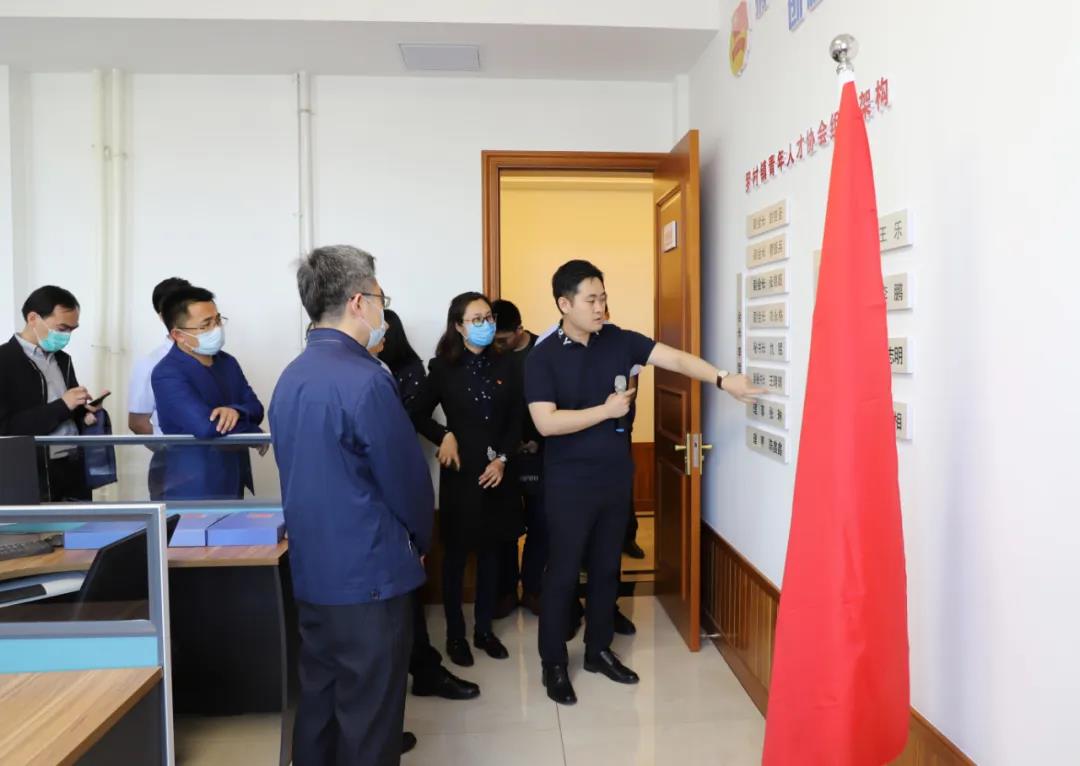 圖為,領(lǐng)導(dǎo)一行參觀青年人才協(xié)會(huì)辦公室