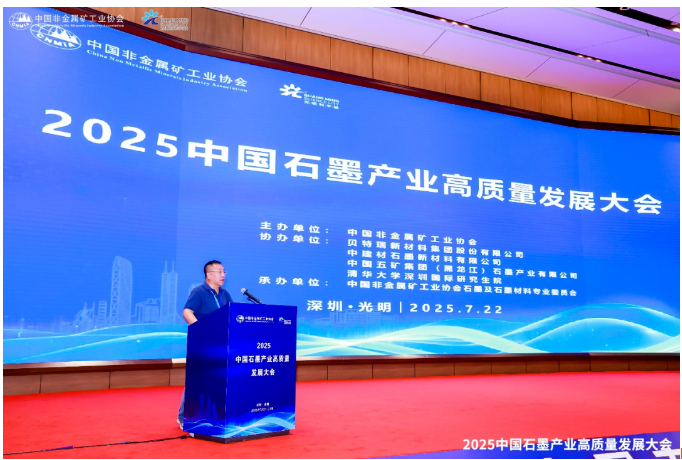 7月21-23日,“2025中國石墨產(chǎn)業(yè)高質(zhì)量發(fā)展大會”在廣東深圳光明科學(xué)城圓滿舉行。大會由中國非金屬礦工業(yè)協(xié)會主辦,貝特瑞新材料集團(tuán)股份有限公司、中建材石墨新材料有限公司、中國五礦集團(tuán)(黑龍江)石墨產(chǎn)業(yè)有限公司和清華大學(xué)深圳國際研究生院協(xié)辦,中國非金屬礦工業(yè)協(xié)會石墨及石墨材料專業(yè)委員會承辦。大會邀請了中國科學(xué)院深圳先進(jìn)技術(shù)研究院研究員成會明、自然資源部礦業(yè)權(quán)管理司二級巡視員艾鴻渝、工信部原材料工業(yè)司建筑材料處副處長時一鈞、光明區(qū)委常委、副區(qū)長王芳成和貝特瑞集團(tuán)監(jiān)事會主席孔東亮等石墨行業(yè)相關(guān)專家教授及相關(guān)企業(yè)代表共計(jì)200余人參會。