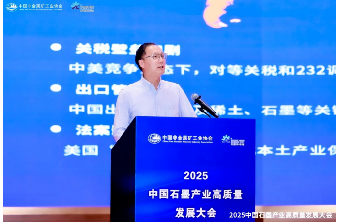 中國非金屬礦工業(yè)協(xié)會會長潘東暉在致辭中指出,當(dāng)下,全球石墨產(chǎn)業(yè)正處于產(chǎn)業(yè)鏈與供應(yīng)鏈的重構(gòu)階段,我國石墨產(chǎn)業(yè)則在經(jīng)歷一場脫胎換骨的變革。這一過程中,發(fā)展既面臨著重重挑戰(zhàn),也蘊(yùn)含著全新機(jī)遇。作為新能源及高端制造領(lǐng)域的核心材料,石墨及其產(chǎn)業(yè)若想在未來實(shí)現(xiàn)高質(zhì)量發(fā)展,關(guān)鍵在于實(shí)現(xiàn)核心技術(shù)的突破、推動市場的多元拓展以及踐行綠色環(huán)保發(fā)展理念,這也將是該產(chǎn)業(yè)未來的核心任務(wù)與前進(jìn)方向。